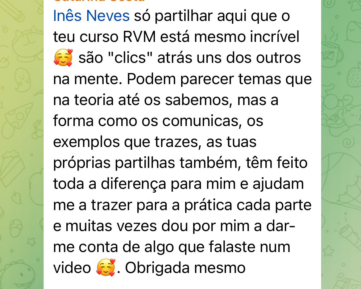 Acesso à Comunidade exclusiva de partilha, inspiração e apoio contínuo no Telegram