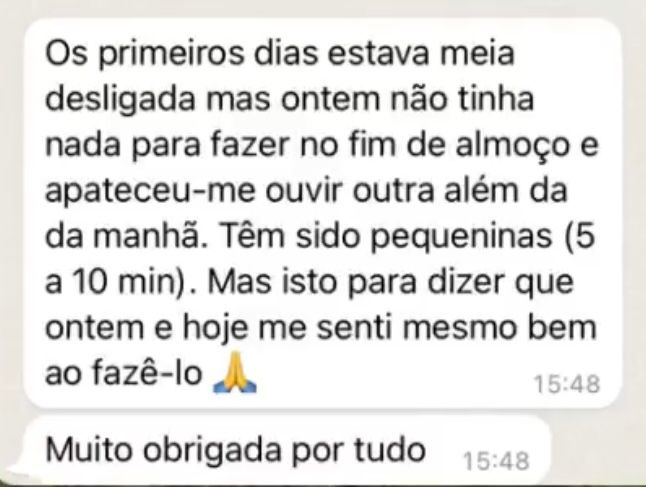 Não! Após a compra, vais receber automaticamente um e-mail para acederes ao produto na tua área de membro e poderás de imediato assistir à masterclass e ter acesso às restantes aulas e meditações guiadas. Podes ouvir onde e quando quiseres, no teu computador ou no teu telemóvel, basta acederes à tua área de membro. Recomendo, no entanto, que utilizes uns fones durante as meditações. Ainda assim, se quiseres ouvir sem fones também o podes fazer, claro. O importante é estares o mais relaxada e confortável possível.