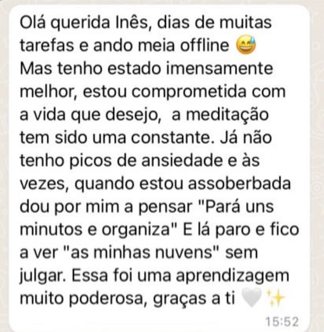 Por isso, a prática de Meditação tornou-se também inegociável para mim e para a minha forma de trabalhar.